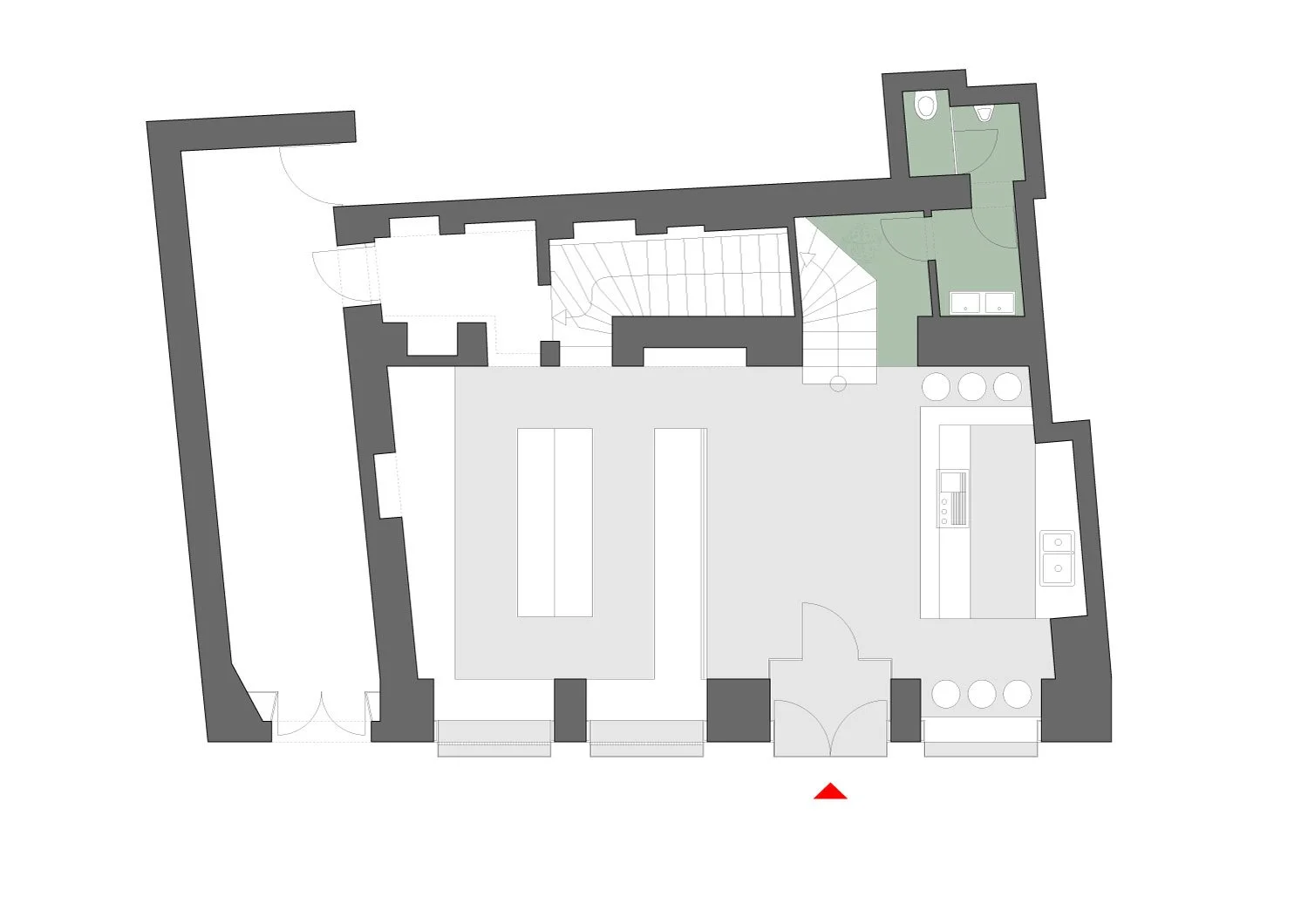 Taking its cue as much from fin de siecle opulence as it does from contemporary juxtapositions in color and texture, the interior is approached as a tableau of atmospheric scenes defined through the application of a rich material palette, one which at first glance may seem incongruous but through the experience of the space presents a clear sequence.