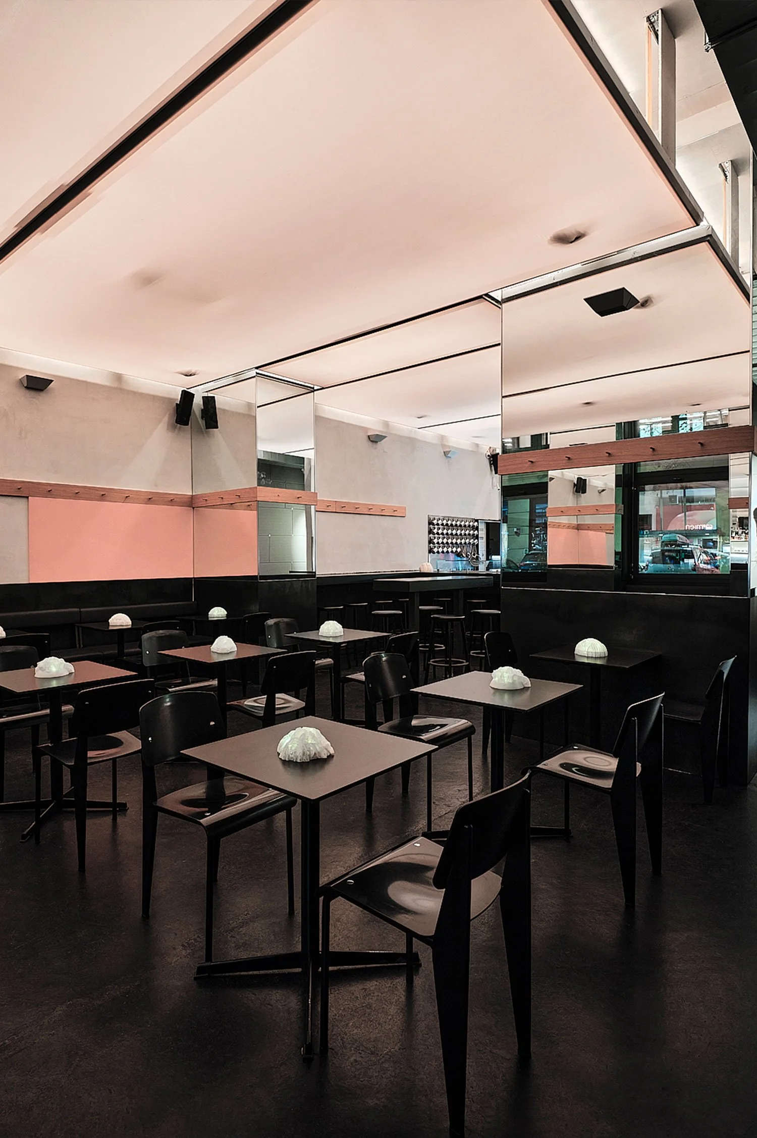 The design for The Unexpected Guest was modeled on an understanding of the bar as a site of tension, often fluctuating between moments of comfort and discomfort. The mechanism highlights the dynamics characteristic of a night out, incorporating the anticipatory journey to the destination and the familiar loss of individual control, toward a collective subconscious.